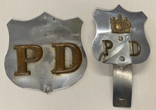 2 Antique Police Department Metal Wall Shield Sign & Motorcycle Badge? Rare