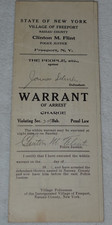 1920 Freeport Nassau County New York Public Intoxication Antique Arrest Warrant
