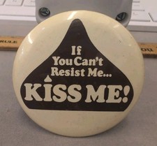 Vintage Pinback Hersheys Chocolate Kiss Me Advertising If You Can't Resist Me