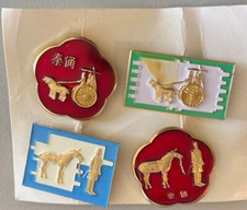 Vintage 1970s Chinese Enamel Tourist Pins Set Terracotta Army Horse Rickshaw