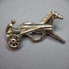 Horse Pulled Rickshaw Silver Toned Brooch Metal Hat Jacket Pin Pinback