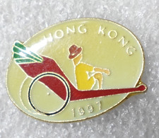 Hong Kong 1997 Pin Rickshaw Red Green Oval Sovereignty Transfer Badge