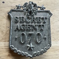 Secret Agent Badge Toy 070 METAL PINBACK BADGE TOY VINTAGE 1950S 007 Spy Bond KO