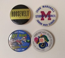 lot 4 button pin pinbacks vintage toy run Witchita KS student council, Roosevelt