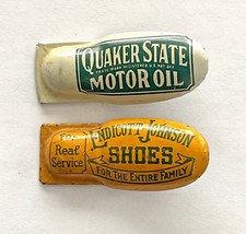(2) vintage tin toy clickers quaker state oil shoe's advertising premium lot