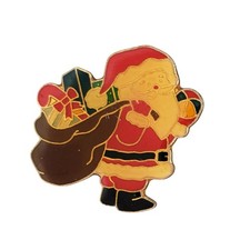 Vintage Enamel Christmas Santa With Toy Sack Lapel Pin