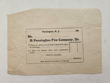 c.1900 antique PENNINGTON FIRE COMPANY nj ABSENCE fines receipt