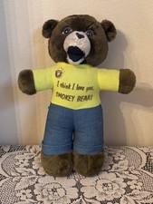 Vintage Smokey Bear Plush Yellow Shirt “I Think I Love You Smokey Bear” 1977
