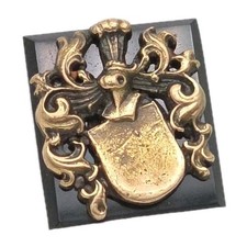 Rare Antique Victorian Black Onyx 10K Gold Nobility Armorial Coat of Arms Cipher