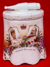1902 Antique Tobacco Jar King Edward VII & Queen Alexander Coronation AS IS