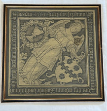 Antique Framed Brass Rubbing Medieval Renaissance Era Dorothy Peckham