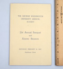 Vintage 1947 George Washington University Medical Society Reunion Program & Menu