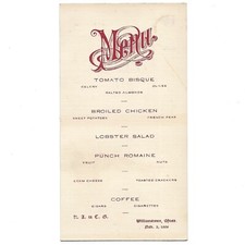 Vintage 1906 Williams College Menu Kappa Alpha Fraternity Williamstown Mass MA