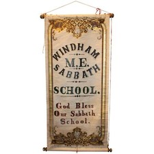 19th c Hand Painted Sabbath School Advertising Scroll Sign Windham Maine