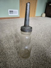 ANTIQUE 1926 GLASS OIL BOTTLE w/ METAL SPOUT 14" Made USA