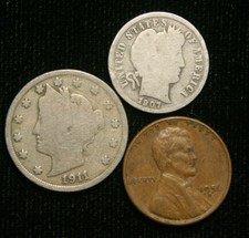 Old US Coin Estate Lot Barber Dime Liberty Nickel Wheat Cent 3 Coin Set