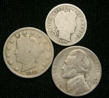 Old US Coin Estate Lot Barber Dime Liberty Nickel War Nickel 3 Coin Set