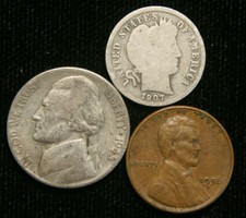 Old US Coin Estate Lot Barber Dime War Nickel Wheat Cent 3 Coin Set