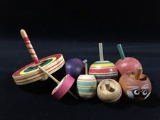 Vintage Japanese Wooden Koma Spinning Tops Set Traditional Toys Hand Painted Lot