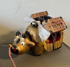 VTG JAPANESE TOY PAPIER MACHE NODDER BOBBLEHEAD COW ANIMAL W PACKAGES & BELLS