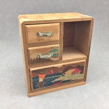 Japan Vintage Folk Art Wood Toy Chest Drawers Inlay Box 4 3/8" Missing 1 Door ?