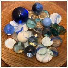Vintage Blue Glass Toy Set for Dollhouse, Antique Marbles & O-hajiki, from Japan