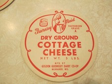 PAIR Cottage Cheese Advertising Promo Sign Vintage Guernsey Maid B46