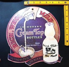 Vintage Cream Top Milk Bottle Cardboard Die Cut Advertising