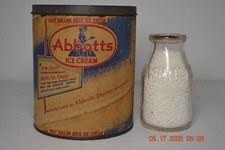 2 Early Abbotts Advertising 1/2 Gallon #5 Ice Cream Container & Pint Milk Bottle