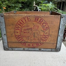 CLEAN WHITE BROS MILK & CREAM DAIRY BOTTLE CRATE WOOD & METAL ADVERTISING BOX