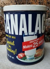 Vtg Sanalac Nonfat Dry Powdered Milk Graphic Advertising Tin Can