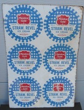 ANTIQUE METAL ADVERTISING SIGN MEADOW GOLD STRAW REVEL ICE CREAM HALF GALLON BEA