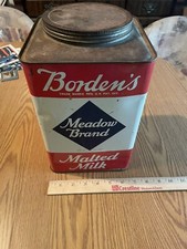 Vintage Meadow Brand Borden's Malted Milk Can Square Advertising Tin 10 lbs