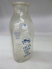 Vintage Holland Farmers Glass Milk Bottle Jug w/Original Advertising & Sticker
