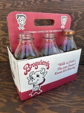 Lot 6 Broguiere's Milk Glass Bottles Clear w/ Carrier - Milk Bottle Advertising