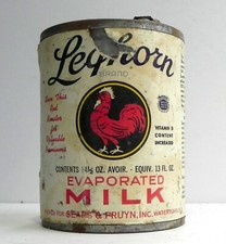 Leghorn Brand Vintage 1930's Evaporated Milk Tin Can Dairy Advertising
