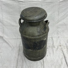 Vintage Metal Dairy Milk Can Gray Black with Lid 25" x 12" Advertising