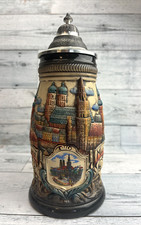 Vintage German Beer Stein Pewter Lid München Cityscape Made in Germany VGC 38L