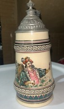 Vintage German Lidded Beer Stein 9 Inch Tall Man Playing Dulcimer to Lady