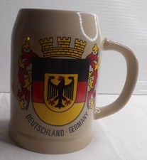 Deutschland Crest German Stoneware 24 Oz Beer Stein 5-3/4" High x 3-1/2" Wide