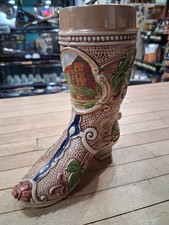 German Ceramic Beer Boot Stein With Stuttgart Schloss Scene