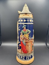 VINTAGE GERMAN BEER STEIN W/LID ● HERZ IST TRUMF ● 15" ● GERMANY
