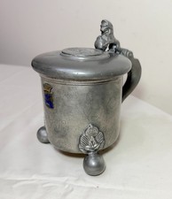 antique 1902 pewter Swedish figural enameled trophy award lion beer mug stein