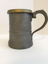 Antique English pewter w brass rim tankard,no marks, H 6” holds 1240ml at rim