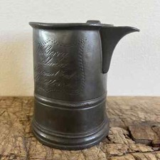 Antique Victorian Tavern Pitcher Engraved Markings Pewter Quart Unique Middlesea