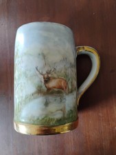 Antique Hand Painted Beer Mug Stein Tankard Signed Porcelain Nature Scene Gift