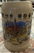 Vintage German Beer Stein Pewter Lid München Cityscape Made in Germany VGC 38L