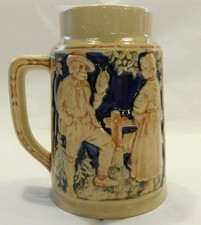 Vintage Style German Beer Stein Relief Tavern Scene Ceramic Mug
