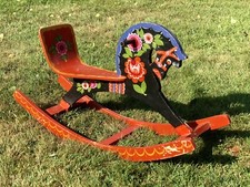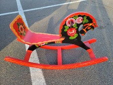 Vintage Made In USSR Soviet Folk Art Hand Painted Floral Motif Rocking Horse Toy