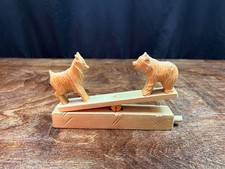 Vintage Russian Wooden Carved Goat & Bear Cub Teeter-Totter Toy